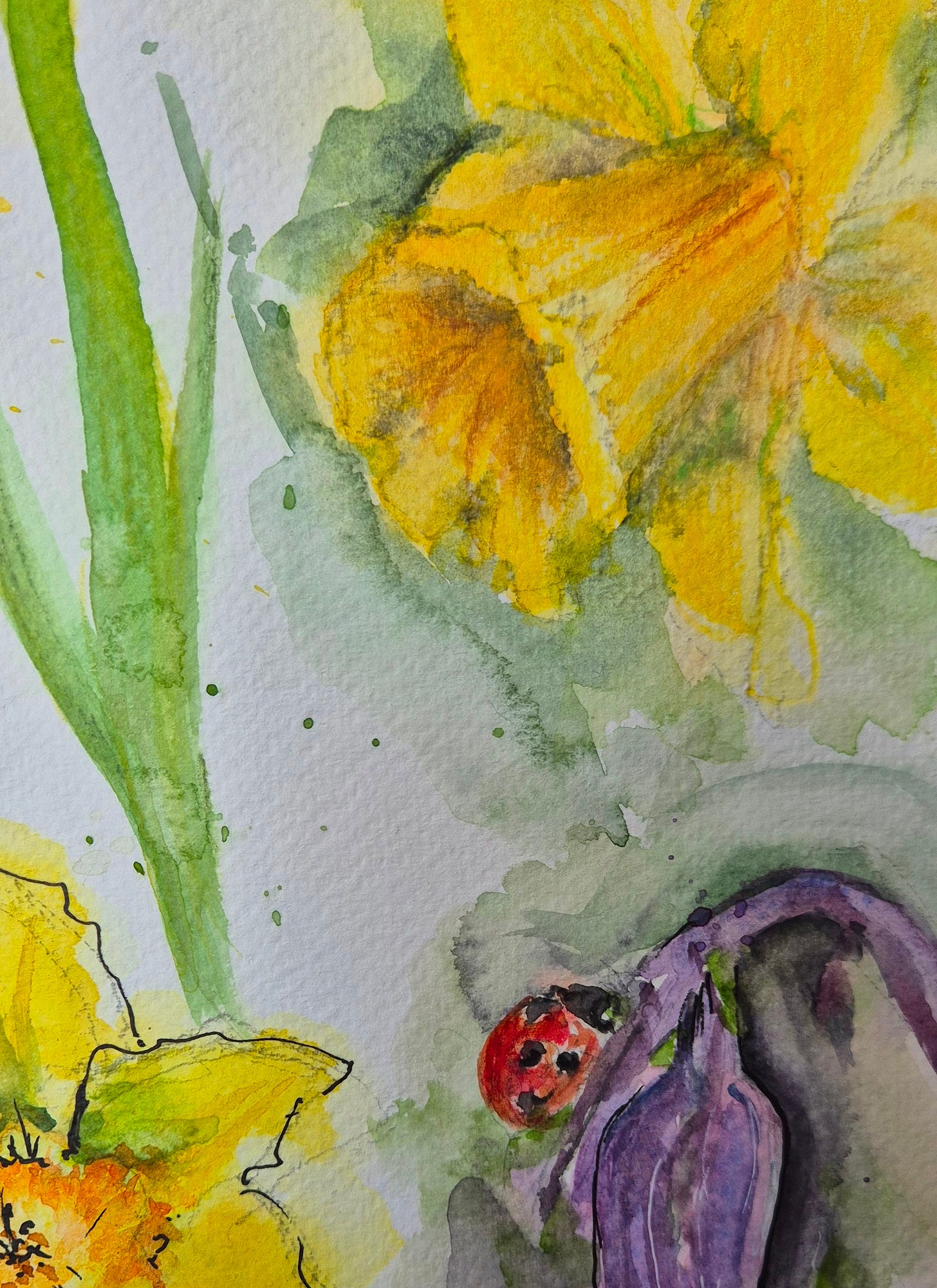 Here’s a recent take on the humble daffodil from our recent sketch and chat session. Thankyou to those who joined in and thankyou to Jane Bradbury for checking in and giving me a little nudge to get away from some of my other distractions!