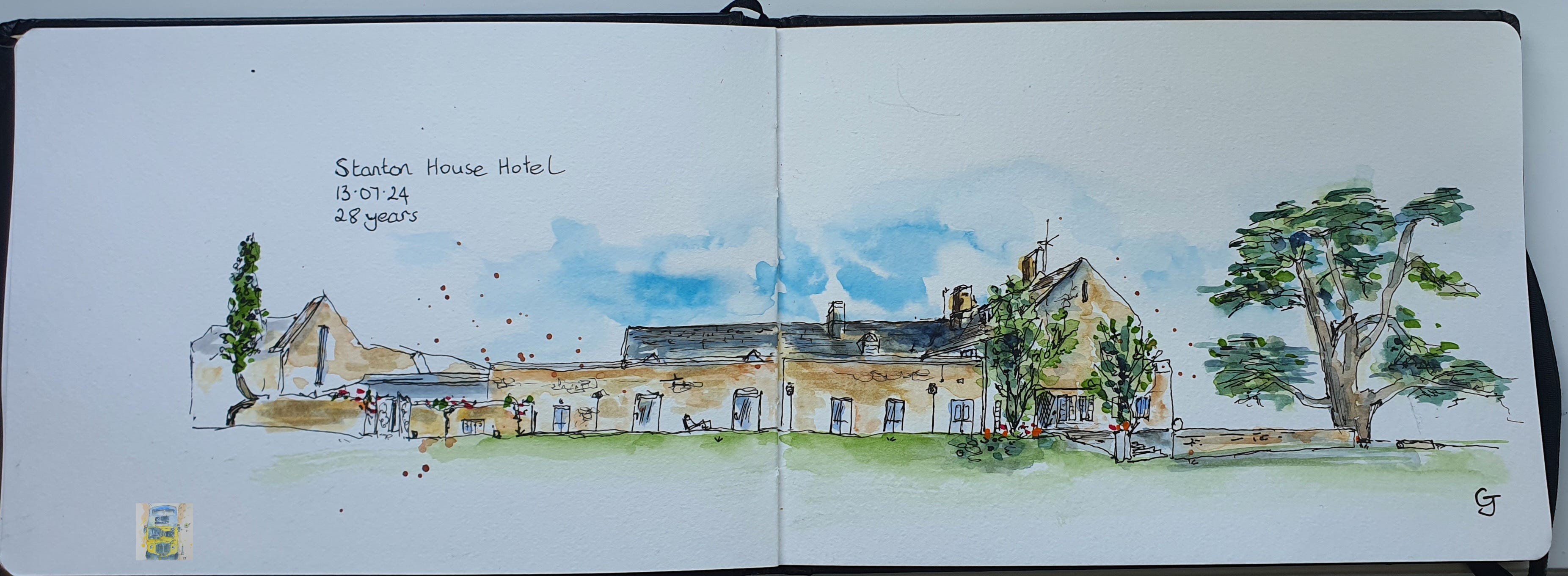 The birth day of Cece will now precede the rest of the July celebrations culminating in our wedding anniversary. 28 years and still going, quite a good achievement I think. We ended up in this lovely hotel1 where I was able to spend a relaxed Sunday morning with a little sketching practice.