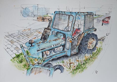 The Stone wall and the Sad tractor are part of a little experiment I’m trying on my chat whereby you can use my photos as prompts to sketch, or create in any other way, in case you are having one of those artists ‘block’ moments. It is always nice to hear from you and I welcome all contributions to the discussion. Come and join in and say hello.